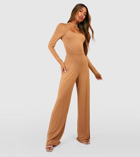 Boohoo Camel Hosszú Ujjú Overál (42) (gzz52180-417)
