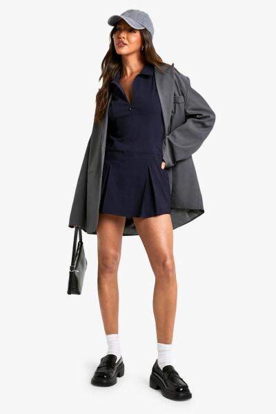 Boohoo Overál Sötétkék Rövid Szárú Rövid Ujjú Gallér Boohoo 42
