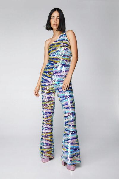 Nasty Gal Többszínű Flittes Overall Hosszú, Terjesztő Szárú 38-AS