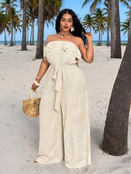 Shein Bézs Csíkos Overál (2XL)