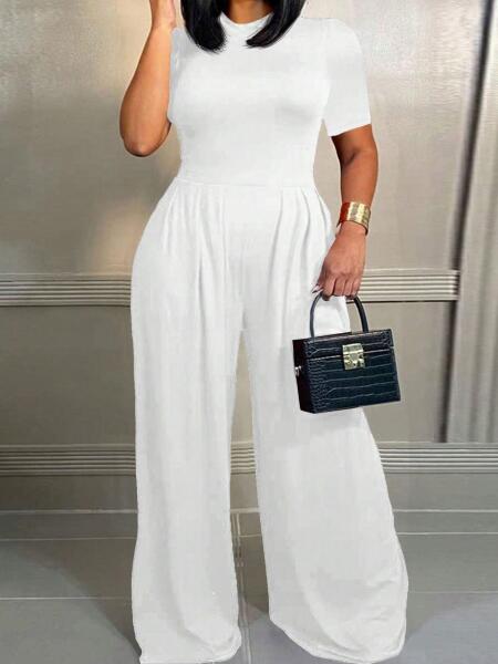 Shein Curve Overál Fehér Elegáns Állógallér Széles Szárú 42 XL__XL
