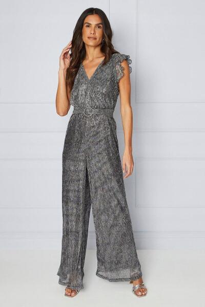 Wallis Ezüst Hosszú Szárú Fodros Overál Fényes Wallis 42
